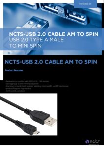NCTS-USB 2.0 CABLE AM TO 5PIN DATA SHEET