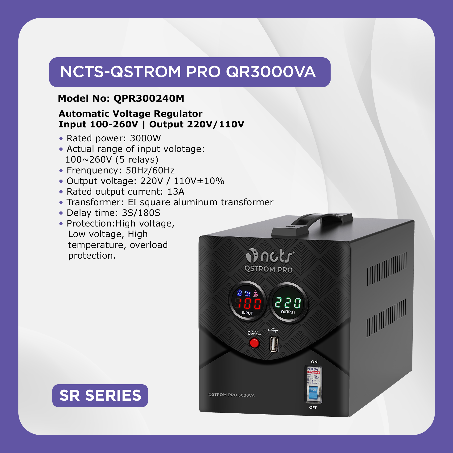 NCTS QSTROM VOTLAGE REGULATOR SR SERIES 3000VA